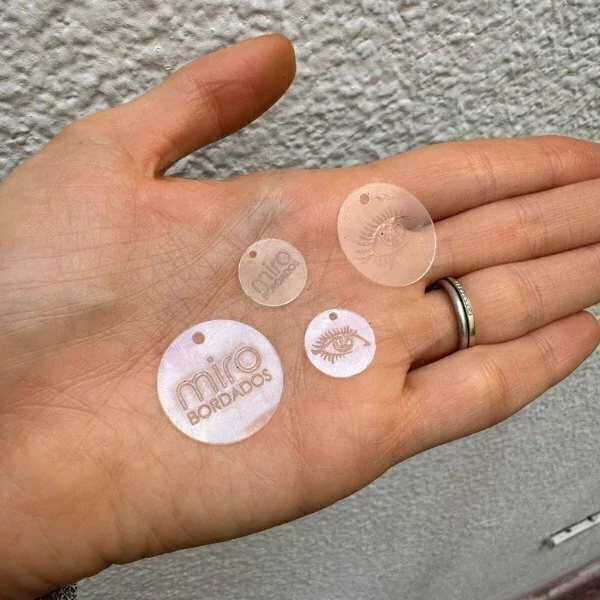 Elegí el tamaño deseado en el menú superior y definí la forma que mejor se adapte a tus productos: redondo, cuadrado, ovalado, o irregular. Podés solicitar que le agreguemos agujeros para coser a mano, indicando tus preferencias por WhatsApp o en las observaciones al momento de concretar la compra.