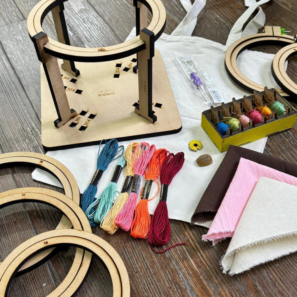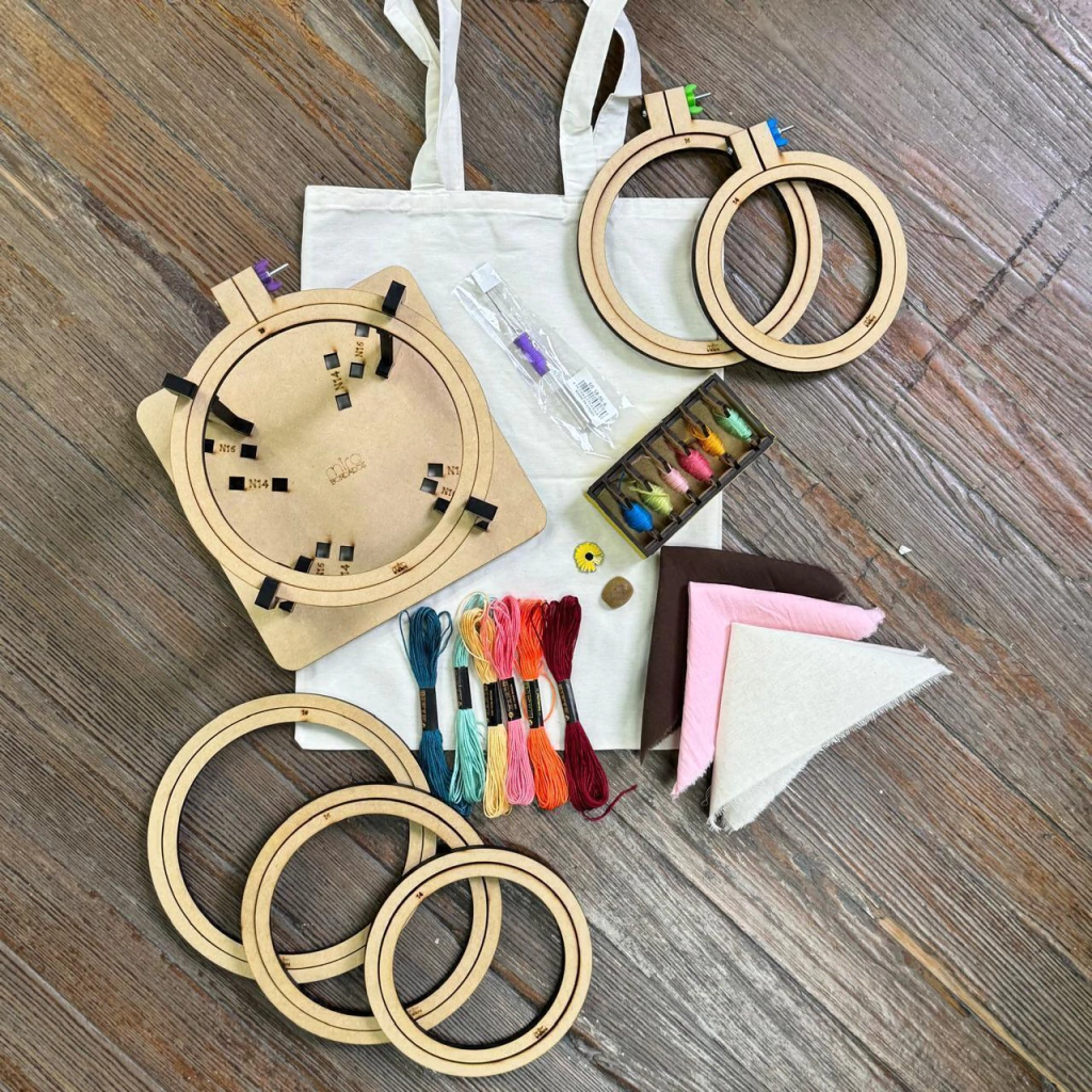 Exclusivo kit de punch needle!, una totebag mágica que incluye más de 9 productos para que mamá disfrute bordando y creando, algunos de ellos: soporte punch, 3 bstidores y 3 basti cuadros (18, 16 y 14cm), sujeta aguja magnetico, hilos, caja organizadora entre muchos! mirá la foto!